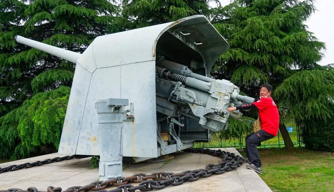 紀(jì)念館的廣場上展示了海軍航空兵的戰(zhàn)機(jī)、直升機(jī)、某型號的導(dǎo)彈、魚雷、水雷,這次都是真家伙了,不過內(nèi)部都拆空了,只保留了外殼。但要數(shù)最給力的下圖的這個(gè)大家伙,這是軍艦上的艦炮,大家紛紛去當(dāng)一把炮手,玩得很嗨。
