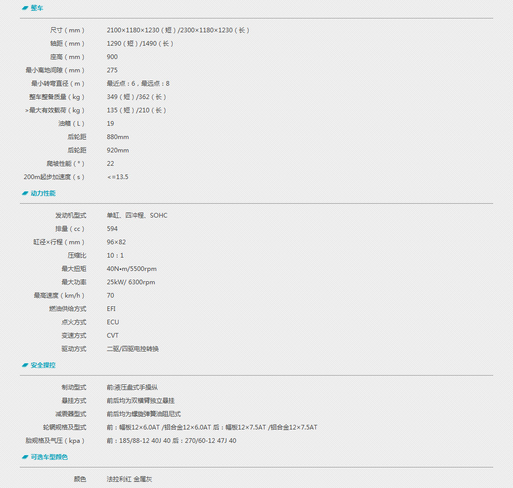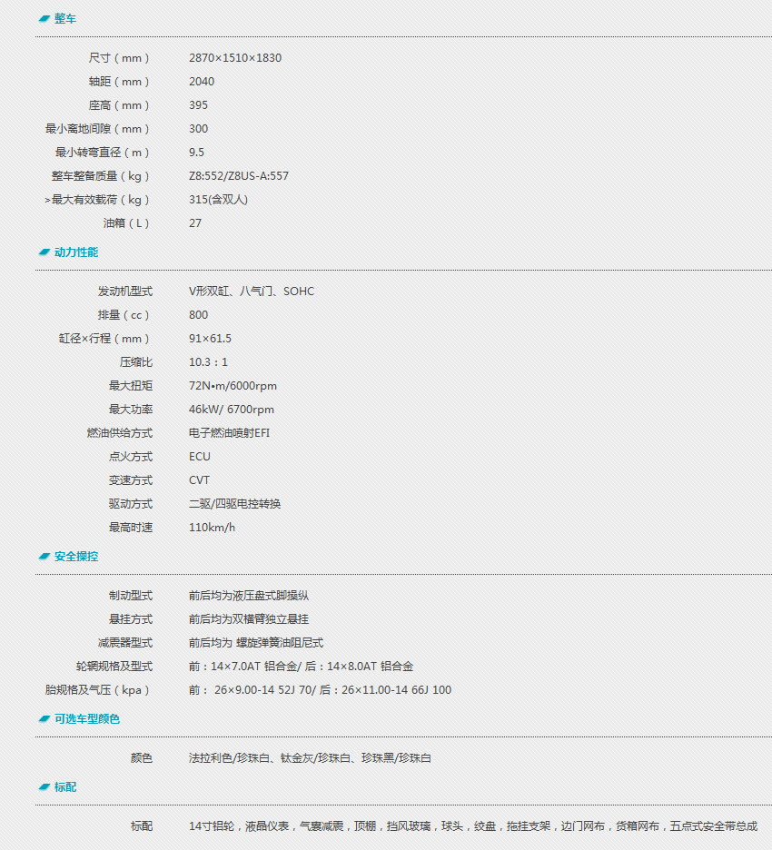 春风ATV全地形越野RCFORCE 800QX8Q?参数规格