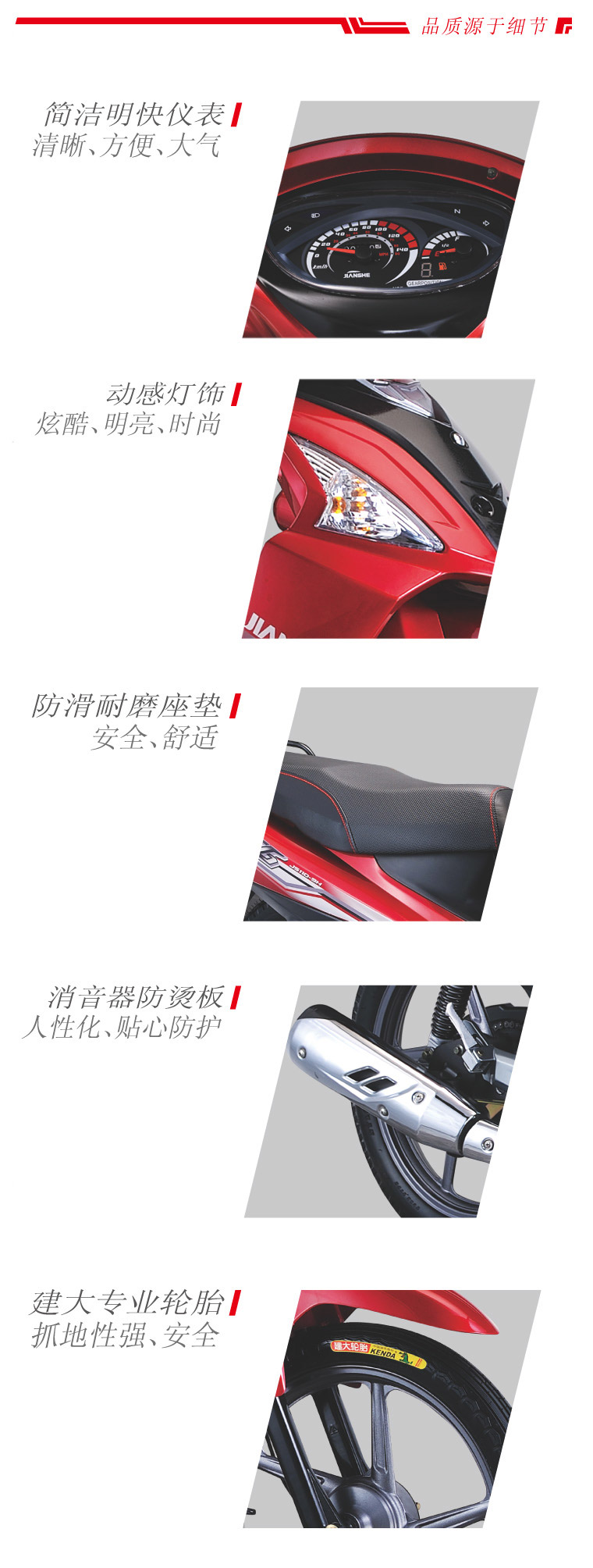 z明快A表,清晰、方ѝ大斏V动感灯饎ͼ炫酷、明亮、时。防滑耐磨座垫Q安全、舒适。消韛_防烫板,人性化、脓(chung)?j)防护。徏大专业轮胎,抓地性强、安全?/div>
