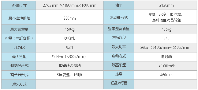 搭載600CC雙缸、電噴、水冷發(fā)動機(jī),車體結(jié)構(gòu)的優(yōu)化設(shè)計(jì)及外觀造型的局部改進(jìn)滿足不同用戶的需求。
