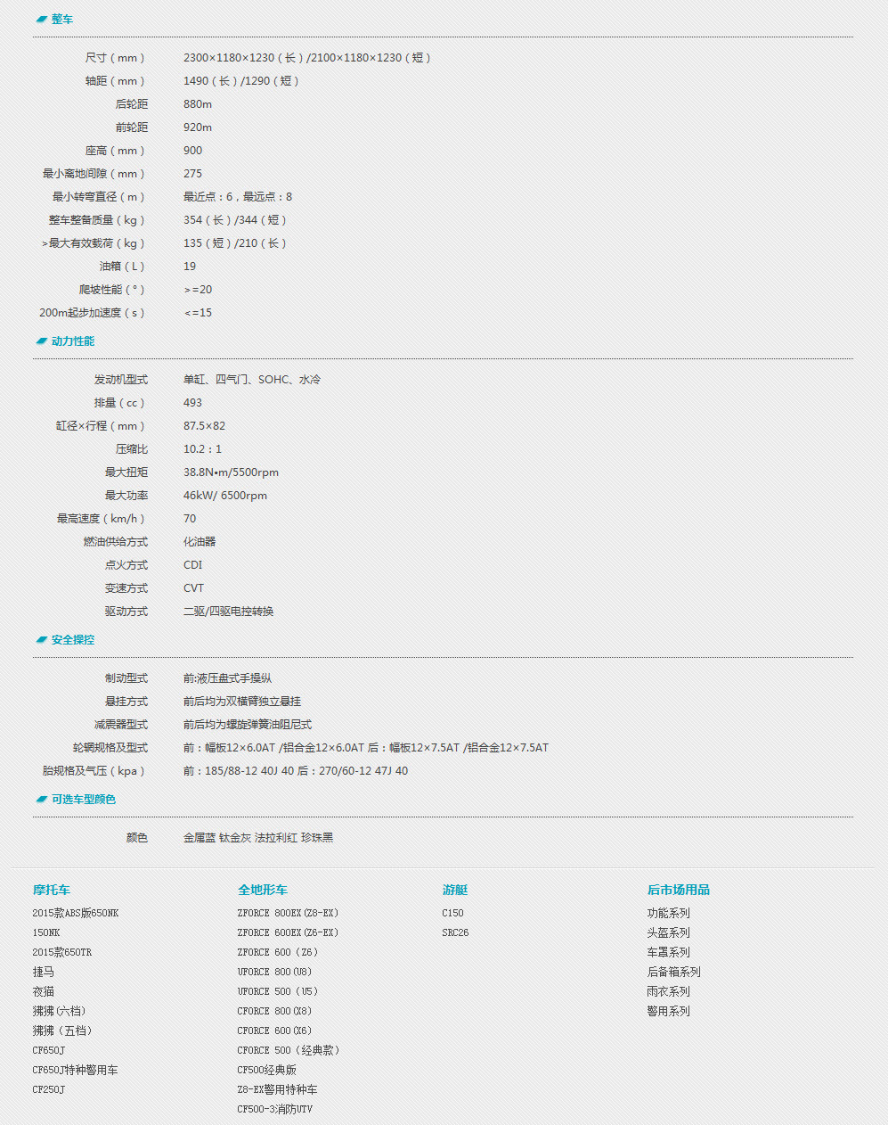 春風(fēng)ATV全地形車 CFORCE 500(X5)-參數(shù)規(guī)格