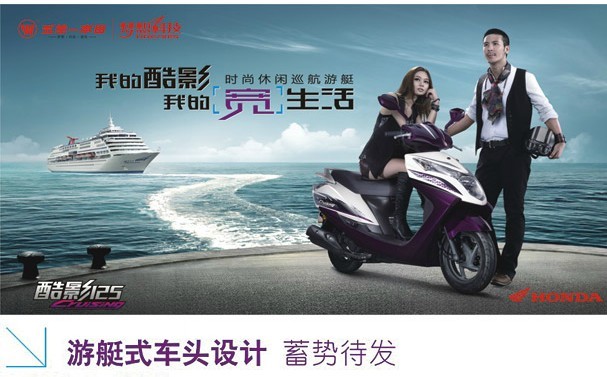 游艇式車頭設(shè)計蓄勢待發(fā),酷影寬優(yōu)勢。以豪華游艇的船頭為設(shè)計靈感,酷影125車頭弧線飽滿挺拔,蓄勢待發(fā);搭配氣勢如虹的寬大前大燈,令人怦然心動;流線型車友設(shè)計,進一步減小風(fēng)阻,令行駛更加愜意,無論是風(fēng)平浪靜的日子還是乘風(fēng)破浪的征途,您的豪邁氣場,遠(yuǎn)遠(yuǎn)襲來。(市場價格8000元左右)