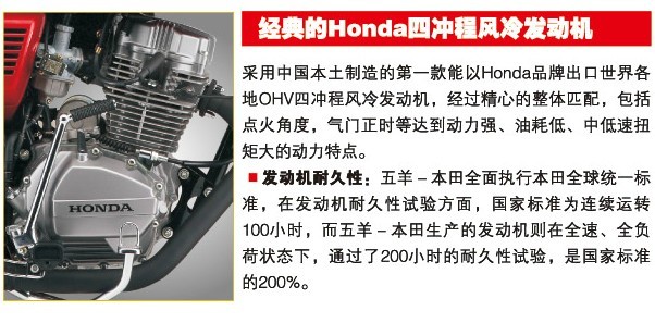 五羊本田全新CG,傳承本田全球本質(zhì)精髓,暢銷中國有二十年,是國內(nèi)被“克隆”最多的車款之一,憑借卓越品質(zhì)和出色性能,國三標準、全新的電控化油器和本田專利技術(shù),全CG一開,春天也來。源自Honda技術(shù)的四沖程風冷發(fā)動機,采用中國本土制造的第一款能以Honda品牌出口世界各地的OHV四沖程風冷發(fā)動機,經(jīng)過精心的整體匹配,包括點火角度,氣門正時等到達動力強、油耗低、耐久性強、中低速扭矩大的動力特點。(市場價格報價在6000左右)
