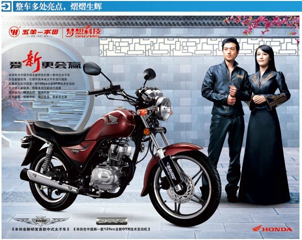 愛新才會贏,本田專為中國市場全新研發(fā)的第一款中式太子車外型新潮實用,引領(lǐng)中國未來太子車流行趨勢配置本田在中國第一款125CC全新OTR技術(shù)發(fā)動機六大核心新技術(shù),領(lǐng)享本田全新動力成果精銳動力,精湛品質(zhì),精道外型坐享統(tǒng)御,突破傳統(tǒng),瞻引示來,愛新更會贏。(市場價格一般在8000元左右)