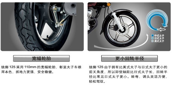統(tǒng)御125由于擁有比美式太子與日式太子更小的前叉角度,所以即使軸距比日式太子長,回轉(zhuǎn)半徑比常見日式太子更小。轉(zhuǎn)彎、調(diào)頭靈活方便,輕松駕馭。采用無需維護保養(yǎng)的濕式濾芯,設(shè)計壽命為16000公里,比干式濾芯壽命提高了1/4,此外無需任何清潔工作。沒有了繁瑣的保養(yǎng)維護,而濾芯的使命壽命卻更加長,省心、省力、省錢。統(tǒng)御125針對天氣寒冷的北方地區(qū)特別配置的化油器加熱裝置,可以低溫環(huán)境下自動對燃油進行預(yù)熱,改善燃油霧化效果,冬天啟動更容易。采用轉(zhuǎn)速電子感應(yīng)裝置,提高轉(zhuǎn)速信號采集的可靠性與精度,耐久性更好,省去更換轉(zhuǎn)速線的麻煩。