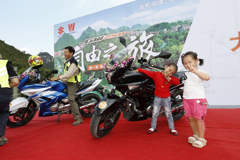 GW250F和靚麗車模登場,兩位騎手充當臨時男模。
