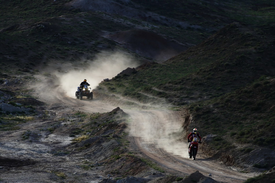 2014中國越野拉力賽(CGR)于9月8日進(jìn)行了第八階段(平山湖賽段)的爭奪,汽車組哈弗車隊的克里斯蒂安/皮埃爾僅以1秒的優(yōu)勢領(lǐng)先韓魏/陳峰,摩托車組金城車隊的蘇文敏在比賽中翻車導(dǎo)致腳踝受傷,但他最終仍以2小時38分40秒的成績排名第一。