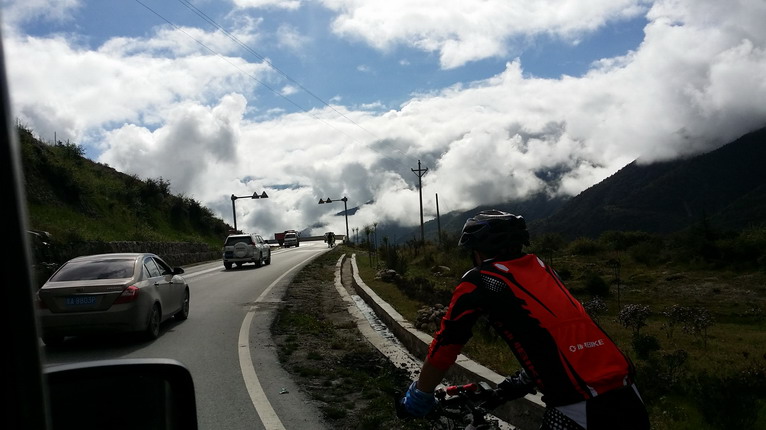從瀘定到折多山口,一路都是連續(xù)的上坡,伴隨著高度的攀升,云和太陽與我們的距離越來越接近,甚至有一種在云中騎行的感覺,在之前,從沒有過感覺天空如此觸手可及。