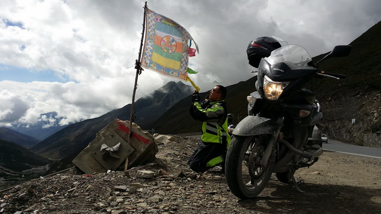隊員陳晨,尊重當?shù)仫L俗,為車隊往后的行程祈求平安順利。