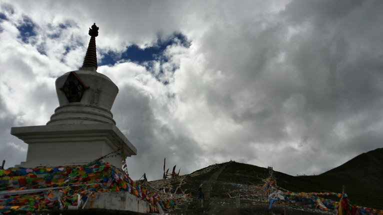 在海拔4298米的折多山口,布滿神圣的經(jīng)幡、白塔、瑪尼堆,為壯麗的大自然添上莊嚴肅穆的色彩。