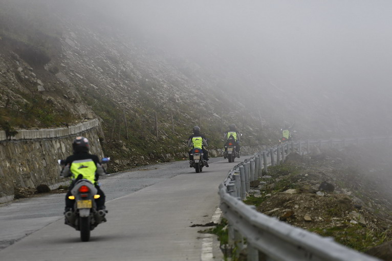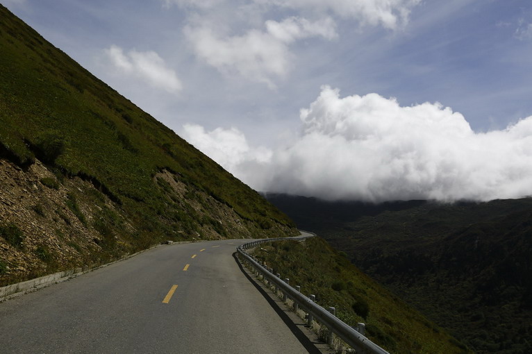 離開山谷,車隊(duì)攀登夾金山高峰!