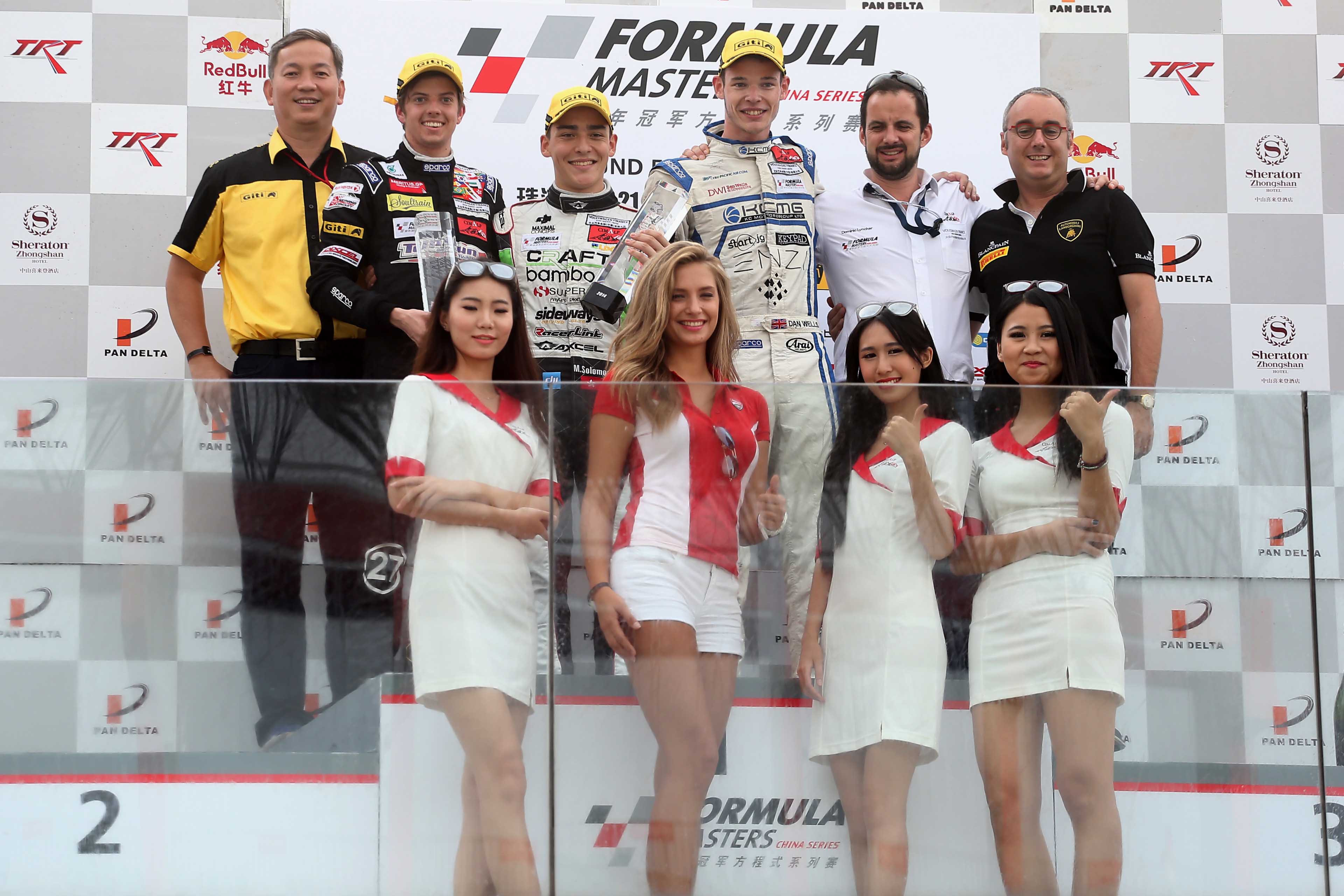 比賽的亞軍和季軍由Zen Motorsport的雙雄——20歲的香港車手吳嘉偉和中國(guó)車手尹海濤奪得。這是他們首次登上領(lǐng)獎(jiǎng)臺(tái),而尹海濤更是本回合表現(xiàn)最佳的中國(guó)車手。