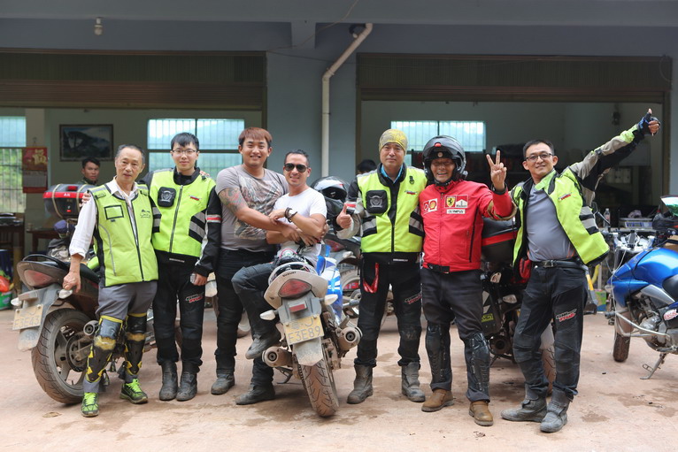車隊(duì)的技術(shù)人員為兩位摩友檢查愛車,并和騎手們一起合照。