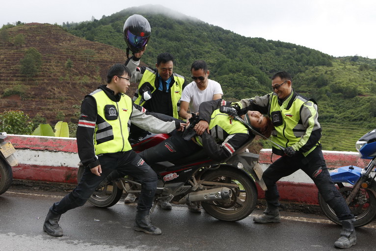 快要到達(dá)終點(diǎn)西雙版納景洪市,隊(duì)員們的心情都十分輕松,開始各種搞怪,犯困的蔡易辰被捉來當(dāng)“俘虜”。