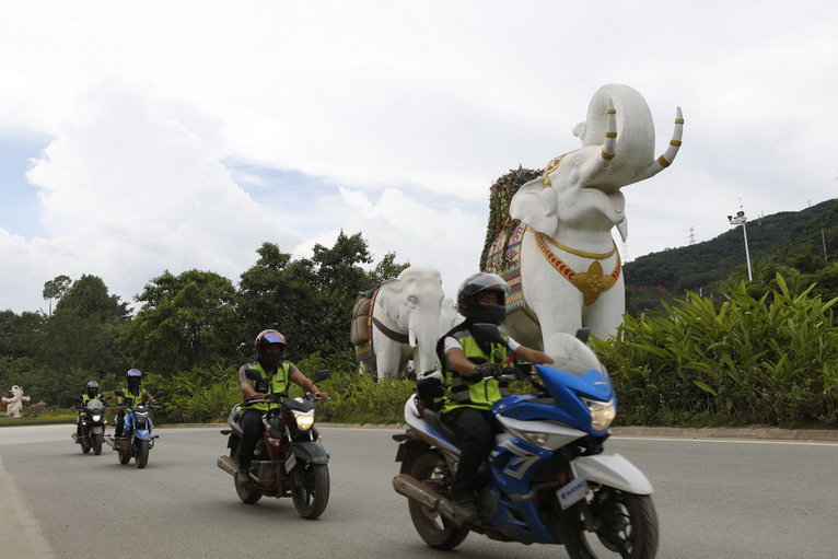 往西雙版納推進(jìn),熱帶風(fēng)情越來越濃,途徑的城市,都是分布于邊境線上,離鄰近的緬甸、老撾,只有幾十公里的距離,騎行在雨林中的山路上,自由之旅的騎手們感覺進(jìn)入東南亞紀(jì)錄片中。