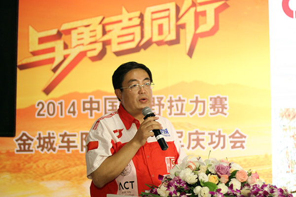 核心提示:  10月18日,金城集團在北京金港賽車場為中國金城車隊獲得2014中國越野拉力賽摩托車組冠、亞軍,廠商冠軍杯舉行慶功會。國家體