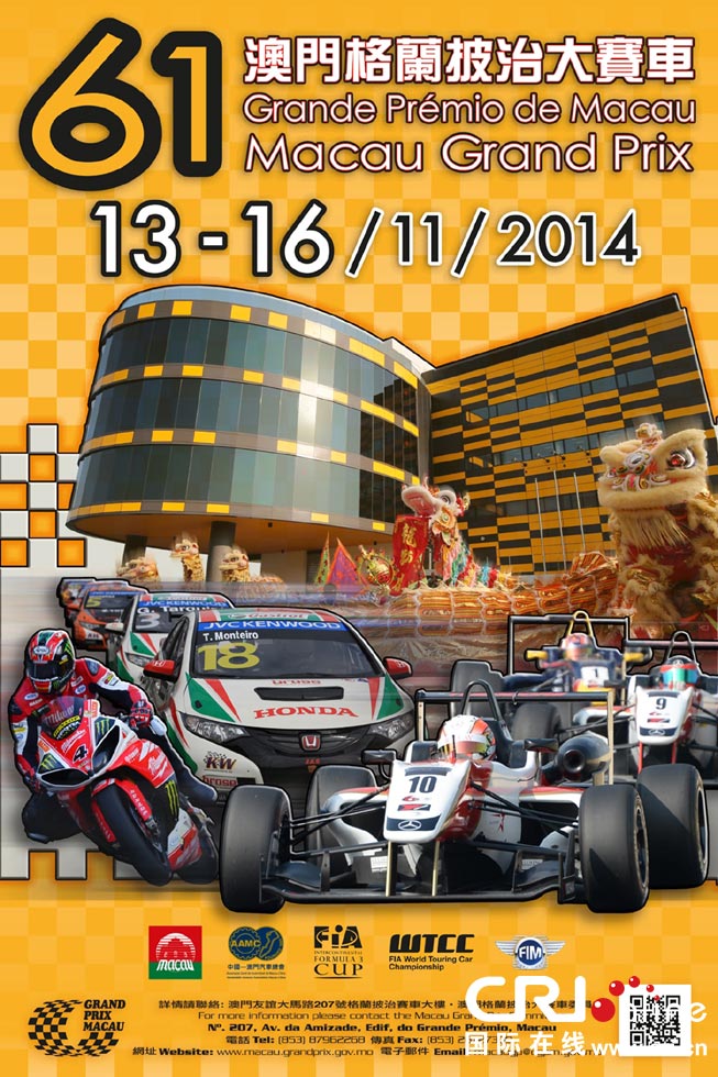 核心提示:澳門格蘭披治大賽車委員會15日發(fā)布消息稱,第61屆澳門格蘭批治大賽車定于11月13至16日舉行。澳門格蘭披治大賽車于1954年創(chuàng)辦,是