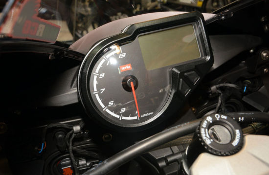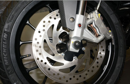 2014 阿普利亞RS4-125 WSBK特別版配置的高轉(zhuǎn)速引擎、獨特的機油潤滑系統(tǒng),堅固的雙梁式鋁合金車架、300mm剎車盤配上對向四活塞輻射式卡鉗、41mm倒置前減震、,還有多功能LCD儀表等等,放在四沖125cc跑車身上簡直是超豪華配置。