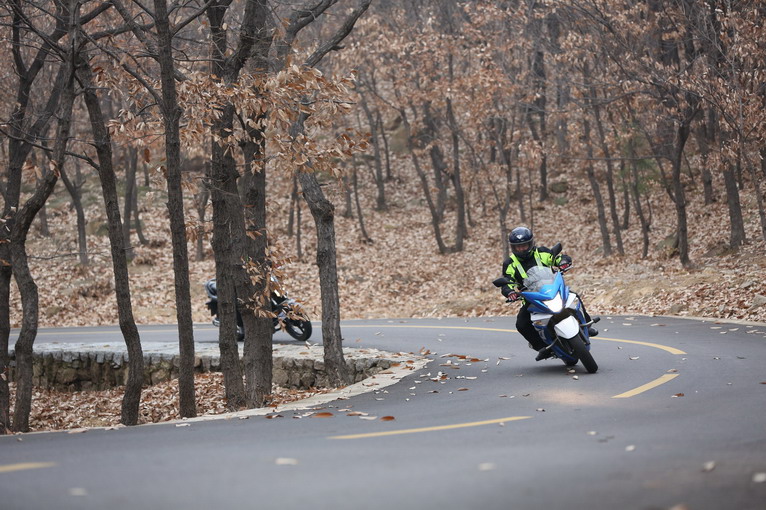 良好鋪裝的蜿蜒山路,是GW250的壓彎天堂,低重心設(shè)計(jì)和良好的操控性優(yōu)勢(shì)顯露無遺。
