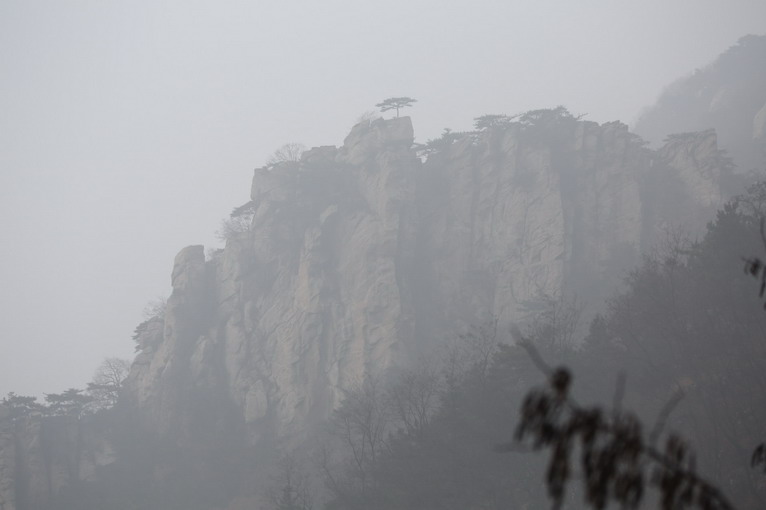 清晨,騎行在蒙山山路上,枯樹、落葉、北風(fēng),一派北國(guó)風(fēng)光。