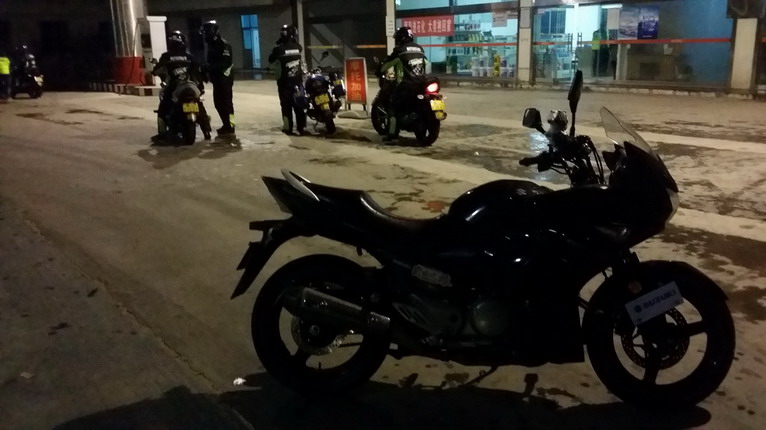 這國(guó)道的照明嚴(yán)重不足,在雨天的時(shí)候燈光被雨水吸收,能見度更差,加上面鏡上的水滴遮擋,在摩托不改透鏡氙氣燈的情況下只能看到眼前幾米的距離,僅能根據(jù)憑前車尾燈和對(duì)向的燈光,在腦海中勾勒出道路情況。這種路況趕路就像賭博,只能賭眼前的路口不會(huì)突然沖出車輛。我當(dāng)時(shí)就打開一半面鏡,減少雨水對(duì)視線的影響,冰冷的雨水打在臉上,跟冰雹一樣生生作痛。