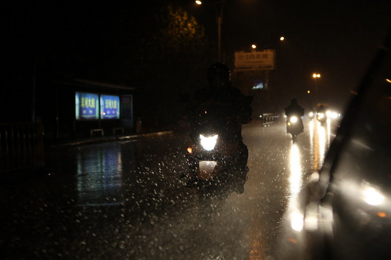 夜幕降臨,國(guó)道上濫用遠(yuǎn)光的大卡車,隨意穿插的汽車、電動(dòng)車,都成了巨大的考驗(yàn)。只有5攝氏度的氣溫,瓢潑的大雨,上百公里的連續(xù)騎行十分驚險(xiǎn)。