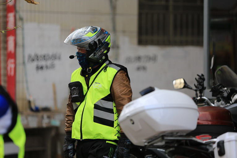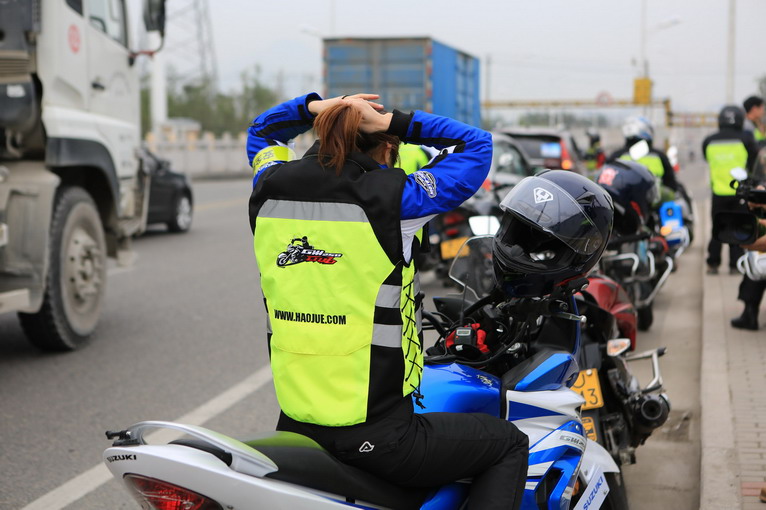 大家期待的女騎手小——李夢潔,今天正式上車,小編搞不懂的是,為什么女車都喜歡在出發(fā)前照鏡子呢,頭盔一蓋上不就都看不見了么。