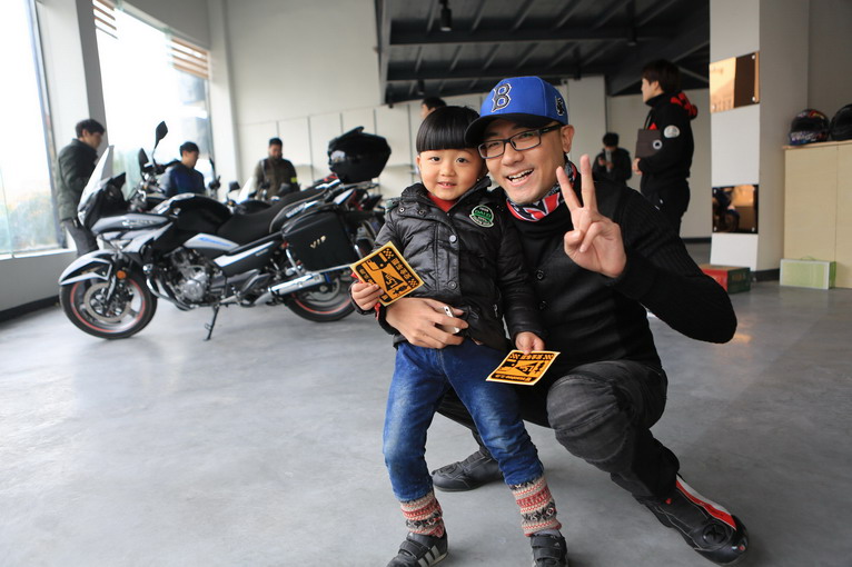 在店外遇到一位十分有安全意識的車友,給小朋友也佩戴上安全頭盔,而且還是跟自己同款的,好看又安全。贊一個!