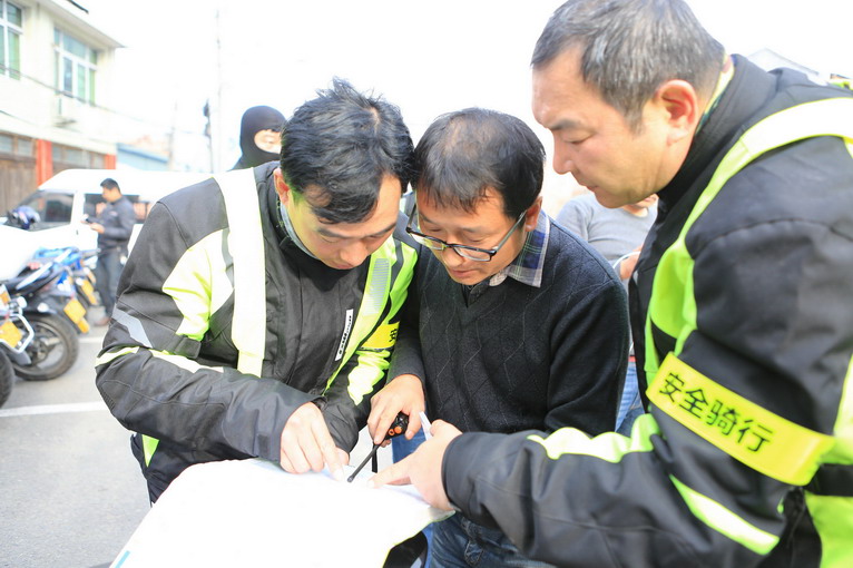 行至G104橋墩鎮(zhèn)一段,離福建——浙江省界只有20公里的路程,眼看就要見到福建車友,發(fā)現(xiàn)前方油罐車起火爆炸,道路被封,騎手與領(lǐng)隊一起商量繞道方案。
