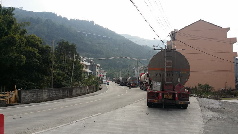 回到G104國道上,狹窄的道路、繁忙的車流,讓車隊前進速度大大降低。