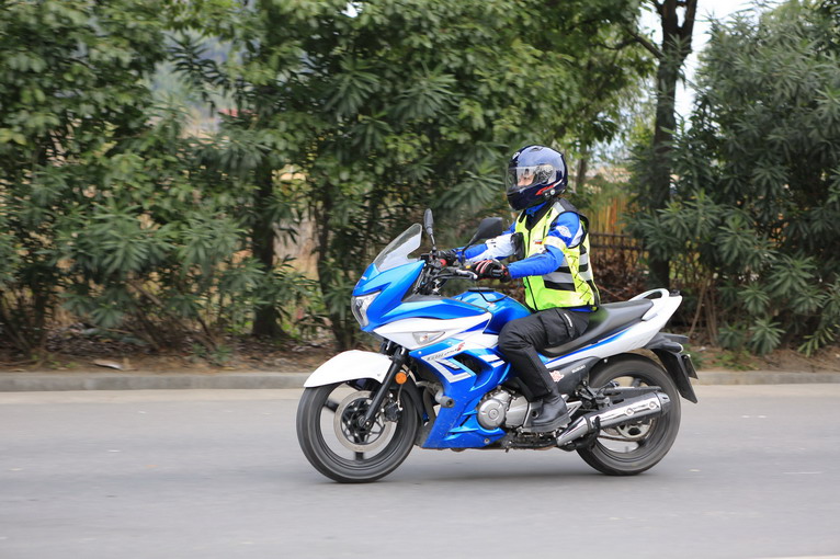 小夢騎行在104國道上,雖然之前沒有騎過GW250,但小夢自己家里玩的是一輛250的進口越野車,所以對較大馬力車輛的掌控還是有信心的。