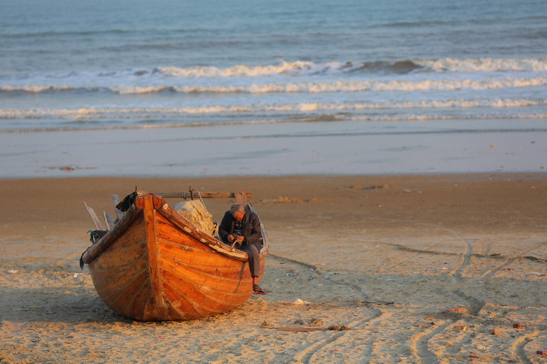 也不知道是因?yàn)楹┪撮_發(fā),還是淡季的原因,南北長達(dá)18公里一望無際的海灘,上面只是偶爾有幾個(gè)小童和游客在漫步,暖陽之下,寧靜的感覺好極了。