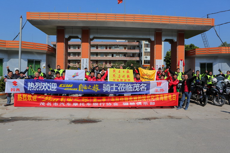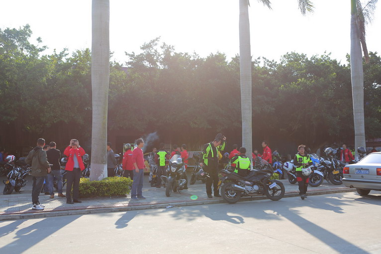 途徑茂名電白陳村鎮(zhèn),當(dāng)?shù)財(cái)?shù)十名車迷在鎮(zhèn)政府門前歡迎自由之旅車隊(duì),讓隊(duì)員們受寵若驚,在政府門前的車隊(duì)陣勢,吸引過路車輛和周邊市民圍觀,造成交通堵塞,在這里給說聲對不起啦。
