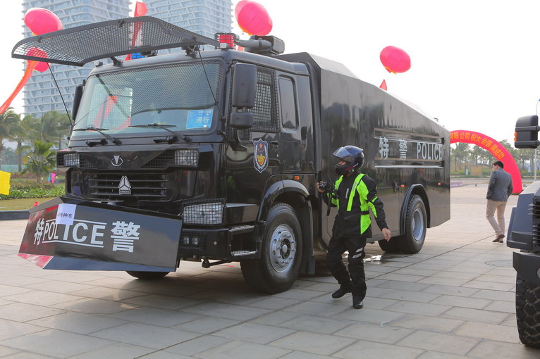 場館外霸氣外露的特警車輛。