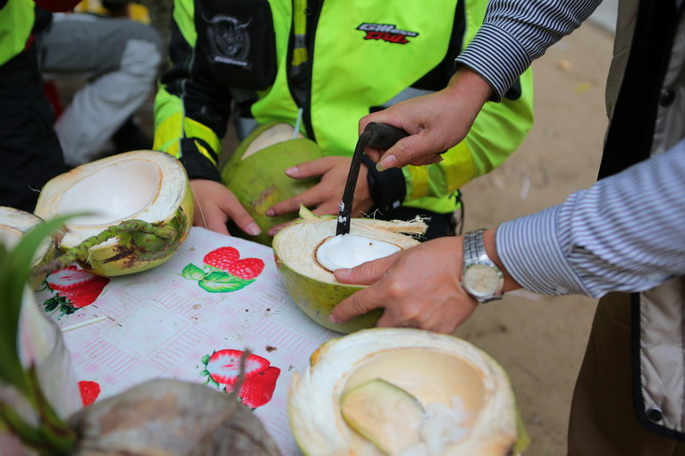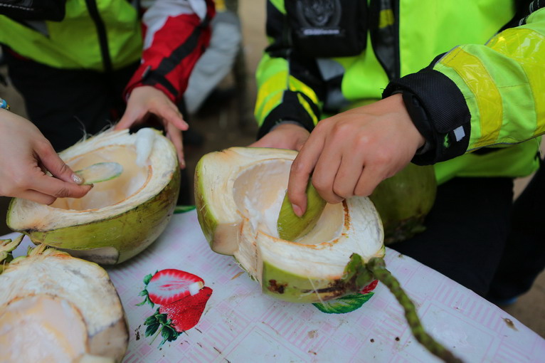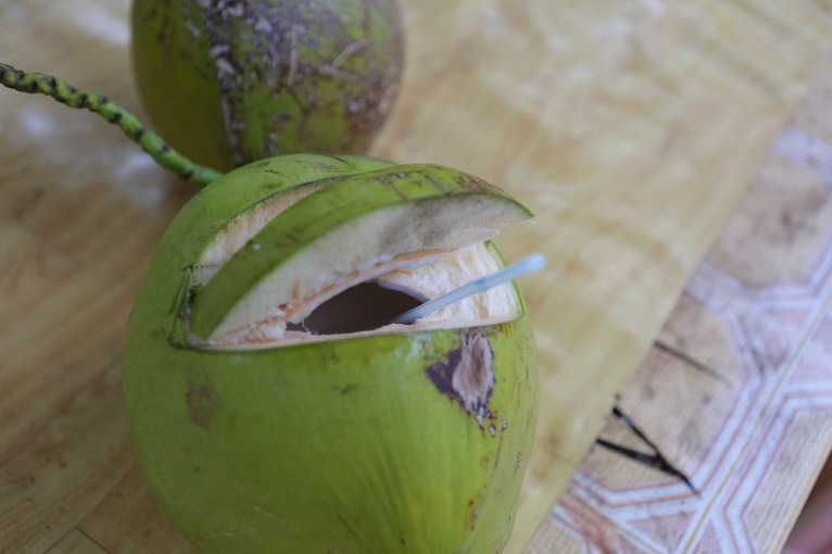 喝完椰子汁,椰肉也可以吃哦,嫩椰子的果肉,就跟豆腐一樣清涼嫩滑。