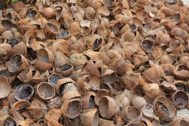 椰林中央,堆積如山的椰子殼,發(fā)現(xiàn)了一個售賣椰子的小農(nóng)莊。椰子5元一個買起,手起刀落,就是清甜的椰子汁。