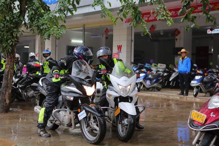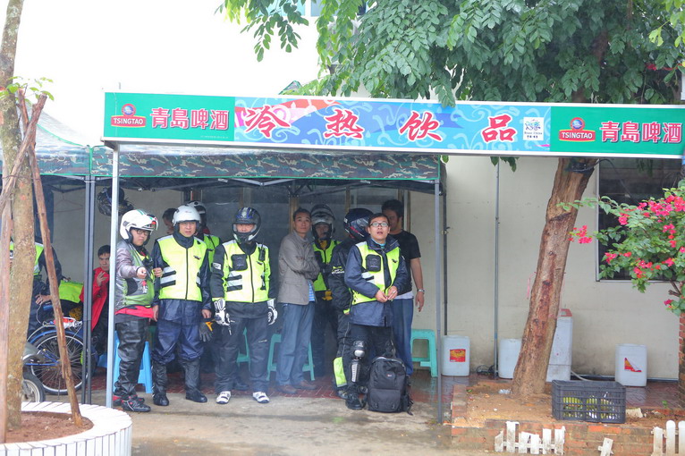 途徑博鰲,下雨裝備不好卸,大家在博鰲論壇會址門前躲躲雨,就沒進去了。