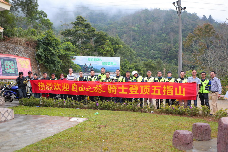 五指山下,當(dāng)?shù)剀?chē)友帶領(lǐng)我們一起上山。