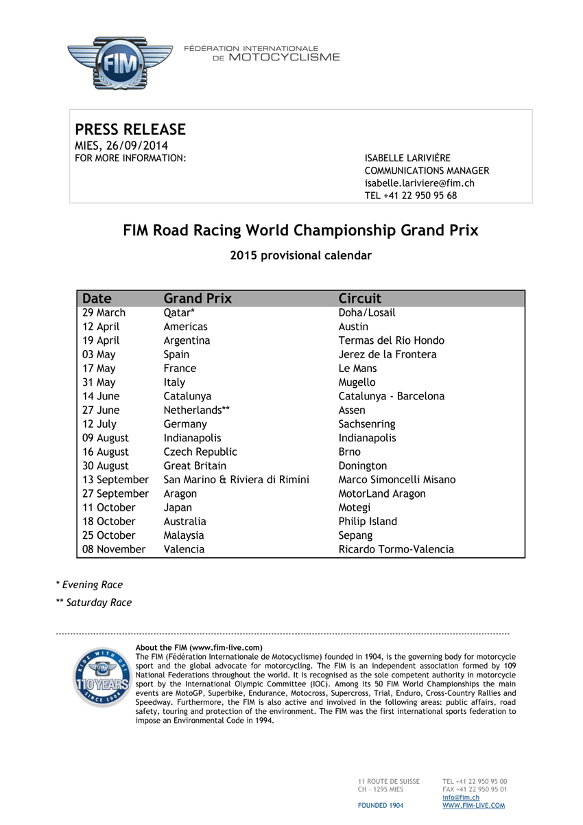 2015’ MotoGP賽程