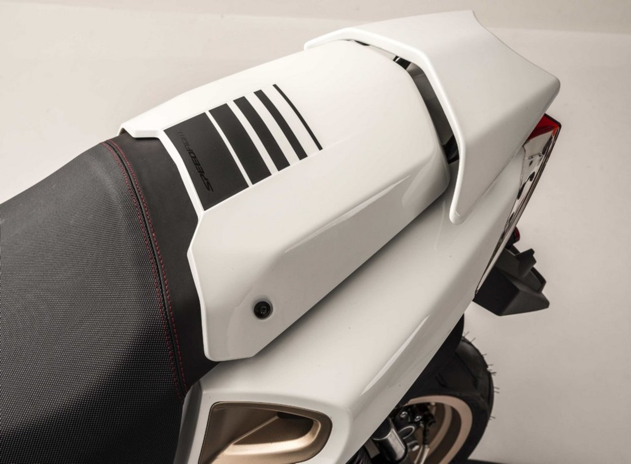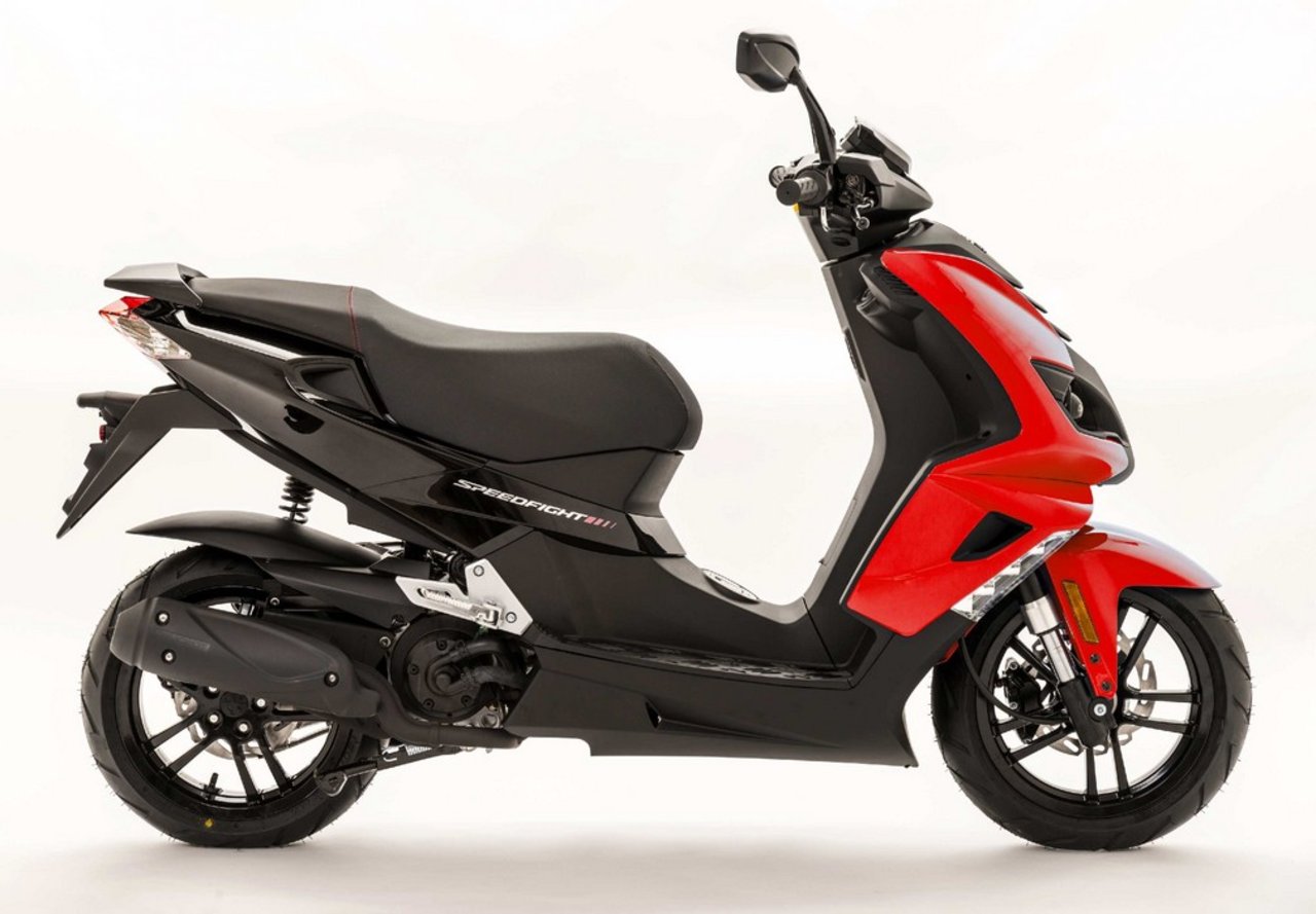 Speedfight 50 的首次推出是在 1996 年,將近二十年的歷史累計(jì)銷量達(dá)到 50 萬(wàn)部。新的第四代 “ 速度之戰(zhàn) ” 有多達(dá)六個(gè)版本供應(yīng)市場(chǎng):2T 風(fēng)冷版(兩沖發(fā)動(dòng)機(jī)),2T 水冷版(兩沖發(fā)動(dòng)機(jī)),4T 風(fēng)冷版(四沖發(fā)動(dòng)機(jī)),50 Darkside “  陰暗面 ”,50  Iceblade “  冰刀 ” 和 50 Pure。車身則采用了一系列高級(jí)別的配置:液晶式的儀表板,倒立式前叉,波浪型的前剎車碟,前、后合金輪框等,且配備了可為智能手機(jī)充電的、12 V 電壓的多功能 USD 插座。