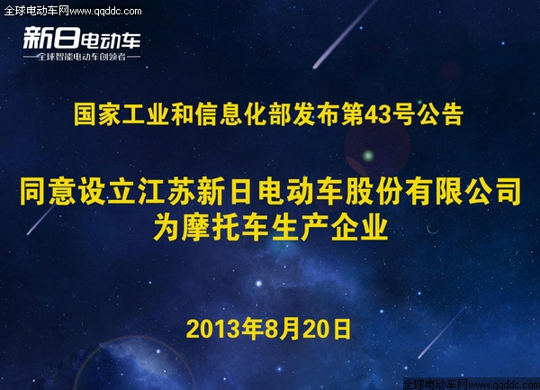 3年磨一劍,新日獲行業(yè)第一個新建電動摩托車生產(chǎn)企業(yè)資質(zhì)