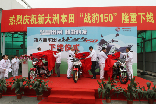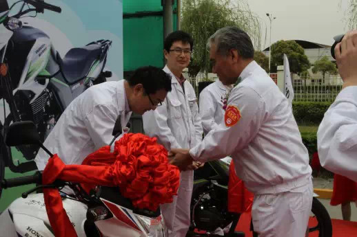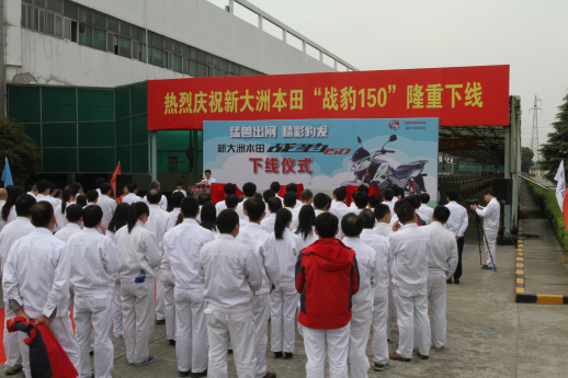 在儀式上,本田摩托車研究開發(fā)有限公司總經(jīng)理戶坂哲也及新大洲本田總經(jīng)理小林太郎分別致辭,高度評(píng)價(jià)了“戰(zhàn)豹150”的成功開發(fā)。