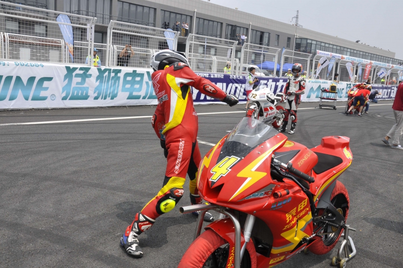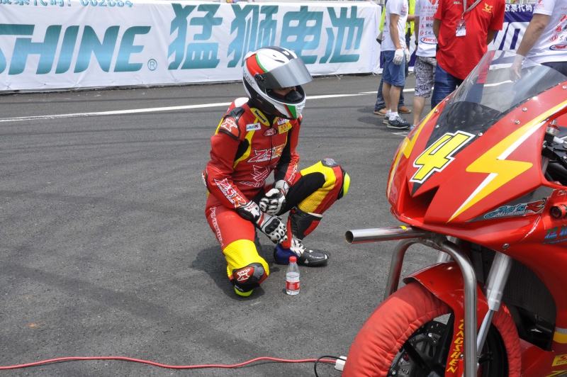 中國宗申車隊車手劉君眉獨特的比賽熱身方式