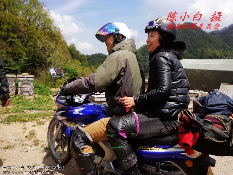 在路途上還遇到了幾個摩友,有一部是本地的陜西牌摩友,而另一部戰(zhàn)鷹是一對夫妻。通過聊天才知道這對夫妻男的是東北的,女的是浙江的,通過擺地攤認(rèn)識的,都是租住同一棟樓,認(rèn)識6天就閃婚,他們決定騎上摩托車到雙方的家里見父母。摩托車是他們買的二手的,在來回雙方家里的路上,同時也感受騎行在路上的旅程,好浪漫。隊員江濤把自己的一副手套送給了這位新人,全隊祝福他們新婚快樂。