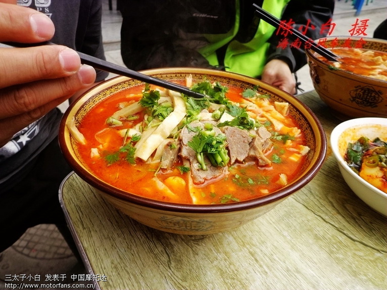 到達(dá)太白縣后也是中午了,大家決定去吃當(dāng)?shù)孛朗?。在太白的美食城,有好多小吃:羊肉泡饃,洋芋糍粑……很好吃。洋芋糍粑有點(diǎn)吃不習(xí)慣,酸溜溜帶著辣味。陜西的蝴蝶吃著真是香啊,一個勁的說好吃。