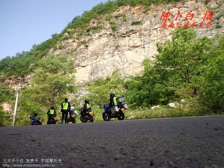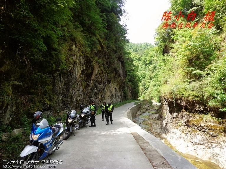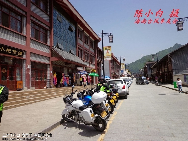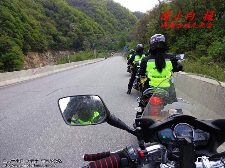我們從黃柏塬出來,經(jīng)過了華陽古鎮(zhèn),在快到目的地寧陜縣前的20公里處,我們遇到了一堆從重慶摩旅過來的摩友。停車下來簡單的聊了一會天,原來也是上過摩托迷網(wǎng)的摩友。交流了一番,都是老前輩,中國百分之70以上的國土都跑過了,太牛了!攝影師石頭趕緊上去問候,因為他們是老鄉(xiāng)。