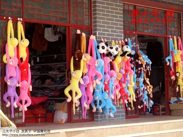 由于華陽的金絲猴很有名,在當(dāng)?shù)馗侨藲飧撸稚虾芏嗟赇伓紥熘鸾z猴的布娃娃在售賣。街上的旅游車也是很多,還是油車來的,不是電瓶車哦。