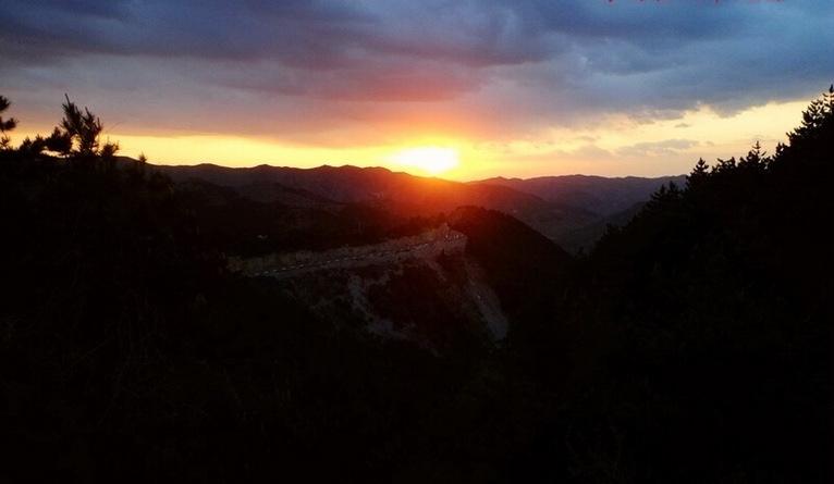 太陽(yáng)落山了,夜晚是趕著夜路到山西省平順縣岳家寨,日落很美。