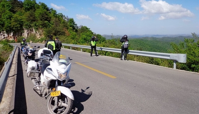 今天告別了熱情的摩迷朋友、環(huán)境優(yōu)美的莊子文化小鎮(zhèn)!又踏上了自由之旅北上的征程!一路上返程的摩托隊(duì)伍不斷!感覺(jué)特別的親切!我們也停下來(lái)同幾個(gè)隊(duì)伍交流問(wèn)候一番!