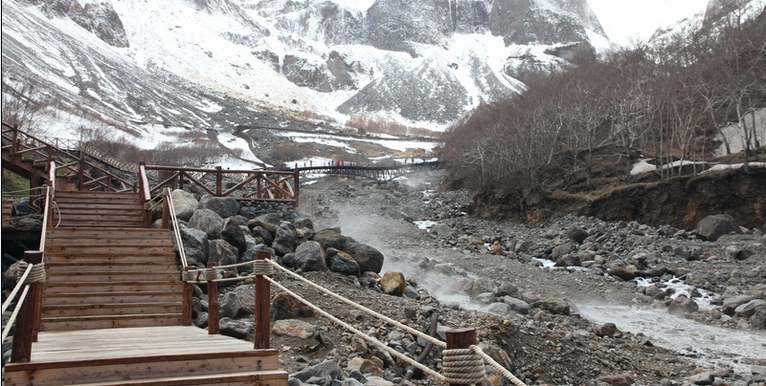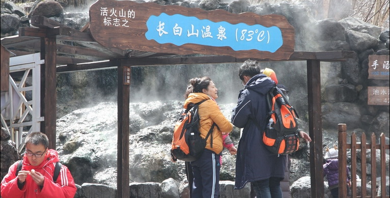 一路上去,還看到了溫泉。超級給力哦,山上冰天雪地,下面溫泉暖暖。